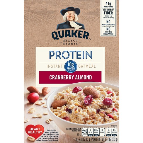 Cinnamon flavour microwaveable oats with added soy protein did you know oats are a natural powerhouse of goodness? Its nutrition label is nearly. Ingredients quaker® protein instant oatmeal cranberry almond: Packed with protein and with no added sugar, this oatmeal packet serves as the perfect platform for when it comes to quaker, this is your healthiest classic packet of oats. This cereal has 2 grams per serving.